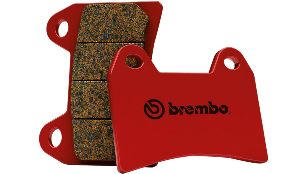 Les plaquettes Sinter sont les plus répandues dans les étriers de frein de nos motos. Elles sont composées d’un mélange de poudres de métaux comme le zinc ou le cuivre – d’où leur autre appellation de plaquettes métal fritté. Ledit mélange est cuit au four à très haute température pour souder les particules entre elles : c’est la sintérisation, procédé qui donne leur nom à ce type de plaquettes. Apparues récemment, elles ont accompagné l’émergence des disques de frein inox et se montrent donc bien plus agressives que les plaquettes organiques. Les capacités de freinage des plaquettes sinter sont optimales pour un usage routier avec les motos modernes.