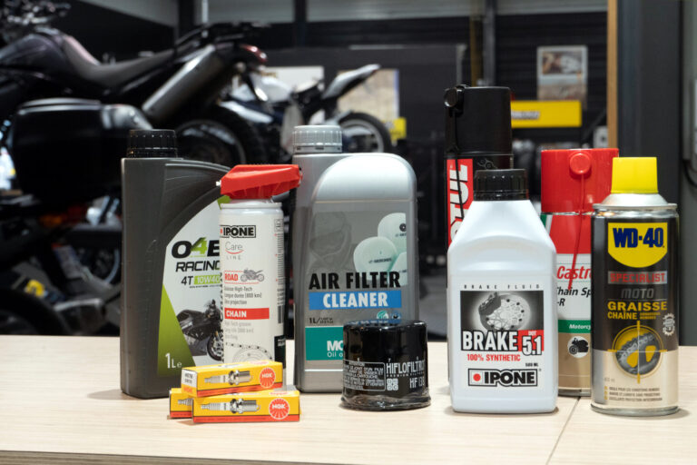 Les grandes marques : Motul, Castrol, Ipone, Motorex, Putoline, Brembo, Elf…